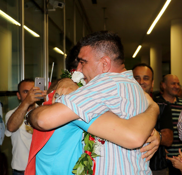 kucakladı. Duygusal anların yaşandığı karşılama programında